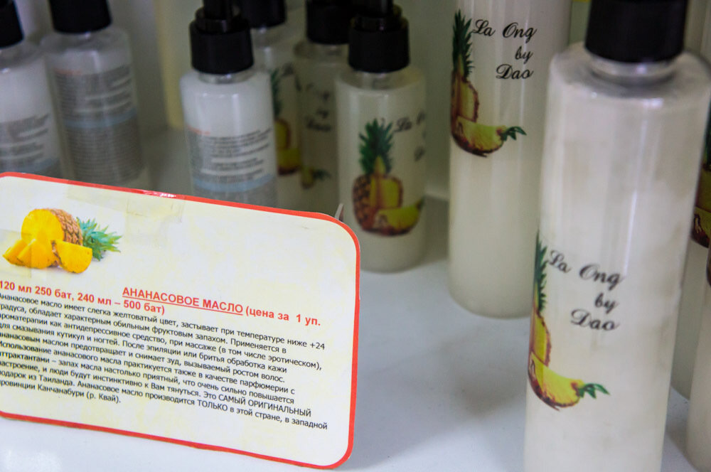 Жаль, что очевидный минус их – труднодоступность из-за элементарно ограниченного тиража. Насколько я знаю, Дао – это тайское имя девушки, которая начала производить ананасовое масло и еще несколько наименований домашней косметики для личного пользования. И мотивацией сей активной жительницы Канчанабури была пресловутая проблемная кожа!