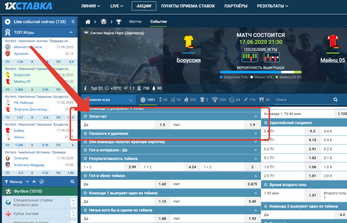 Кроме этого, большим спросом пользуется ставка «исход тайма». В букмекерской конторе Winline ставки на исход заброшены в одноименный раздел. Дополнительно компания предлагает заключить пари на комбинированные ставки, например, Исход + Тотал.