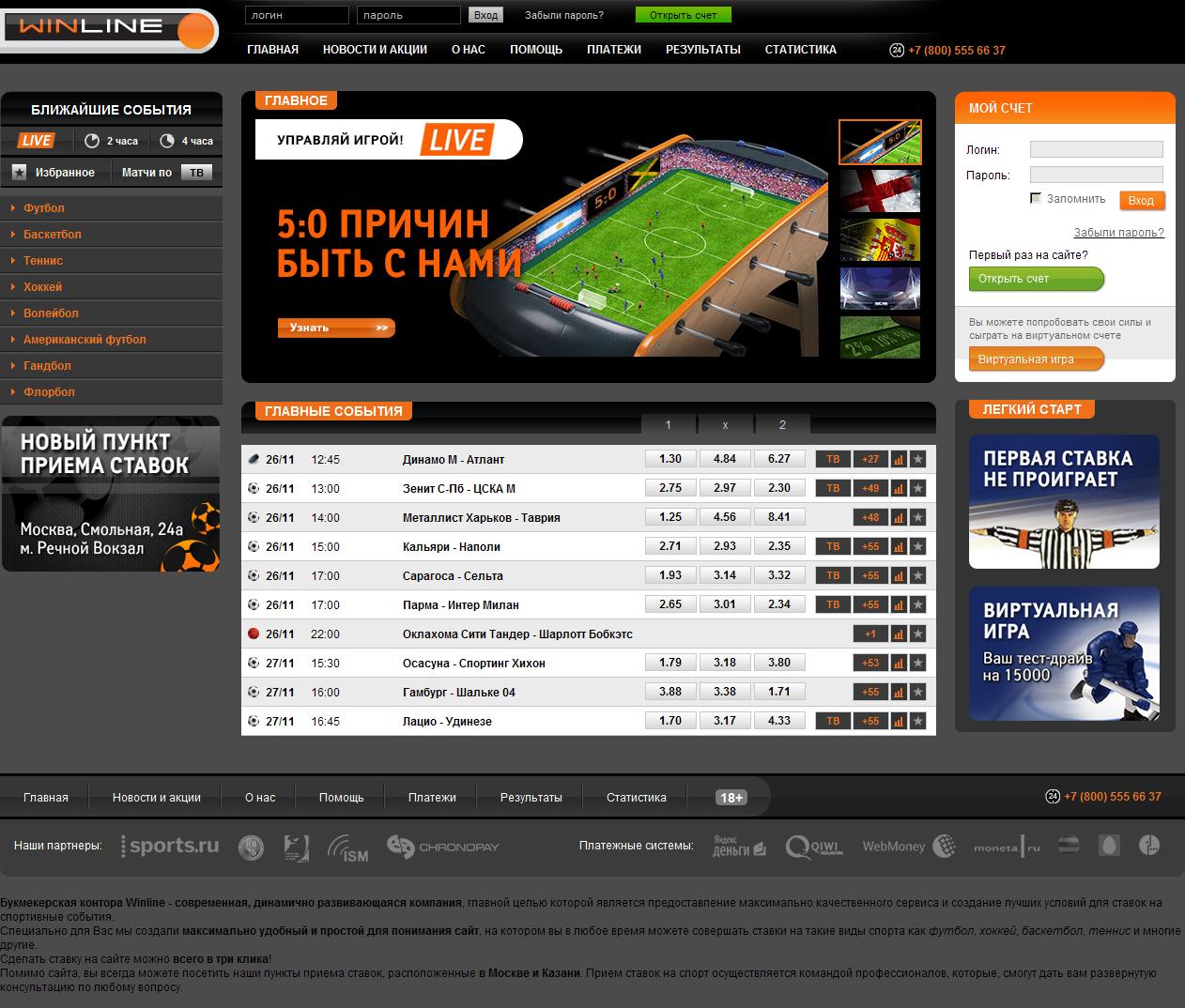 Линия: включает около 30 видов спорта. Есть как крупные спортивные события, так и малозначительные турниры. Роспись выше среднего.