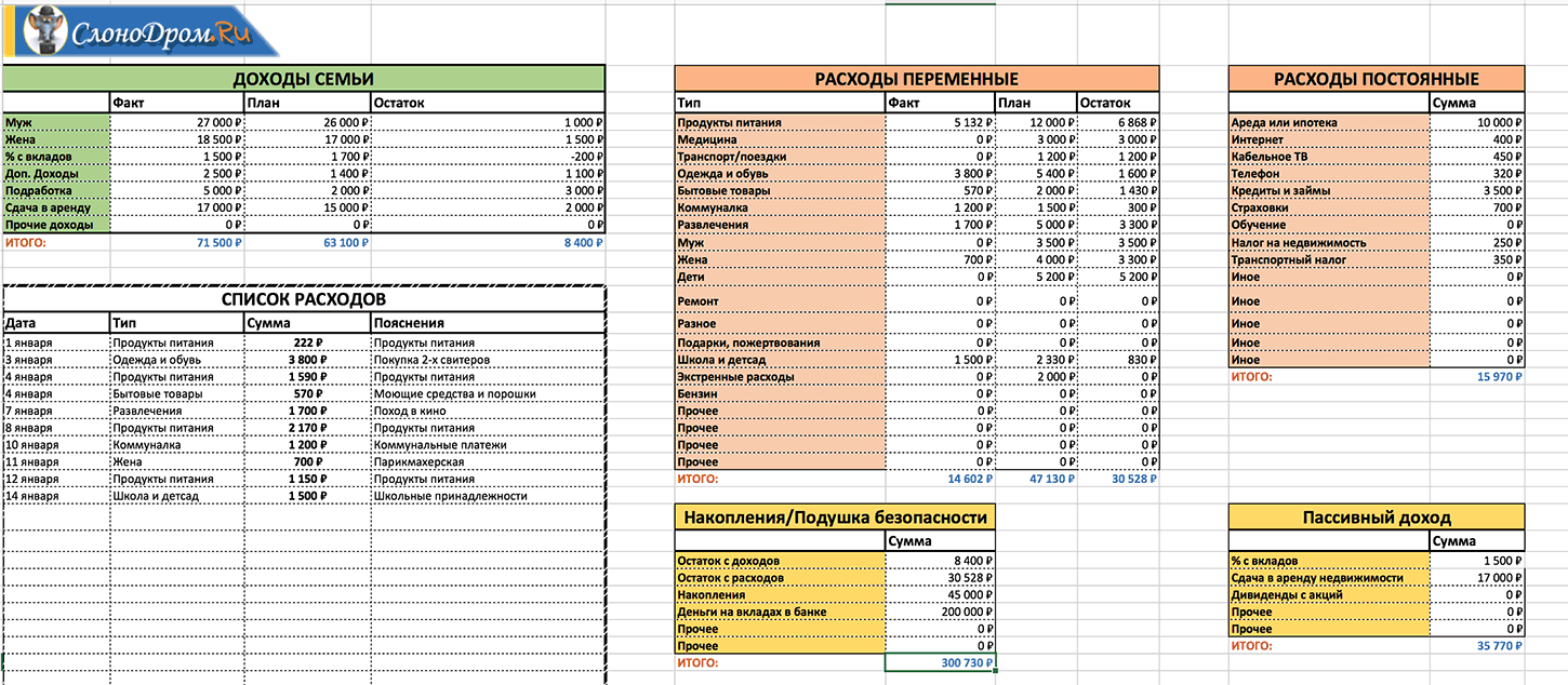 Для этих целей удобна таблица в Exel. Если пользователь не владеет навыками работы с этим инструментом, подойдет обычный блокнот. Таблицу нужно поделить на колонки и дать каждой название в соответствии со статьей бюджета: «Коммунальные услуги», «Продукты», «Одежда», «Проезд» и тд. Затем после каждого похода в магазин, оплаты услуг на основании чека необходимо вносить данные в таблицу в соответствии со статьей расхода.