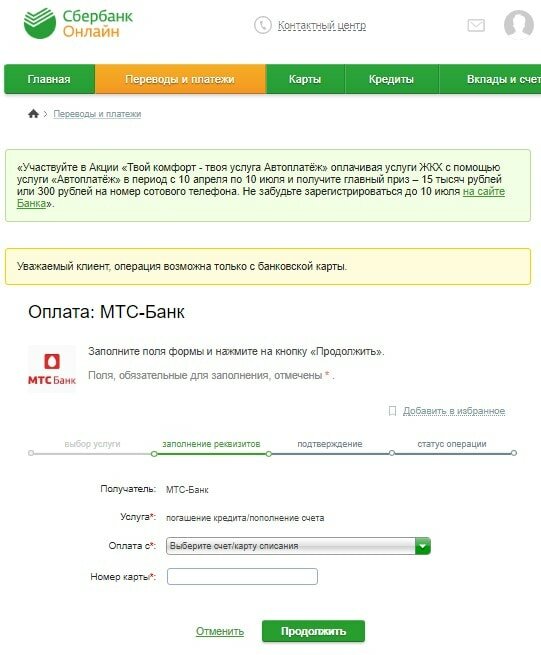 - Заполните данные по аналогии со Сбербанком онлайн: