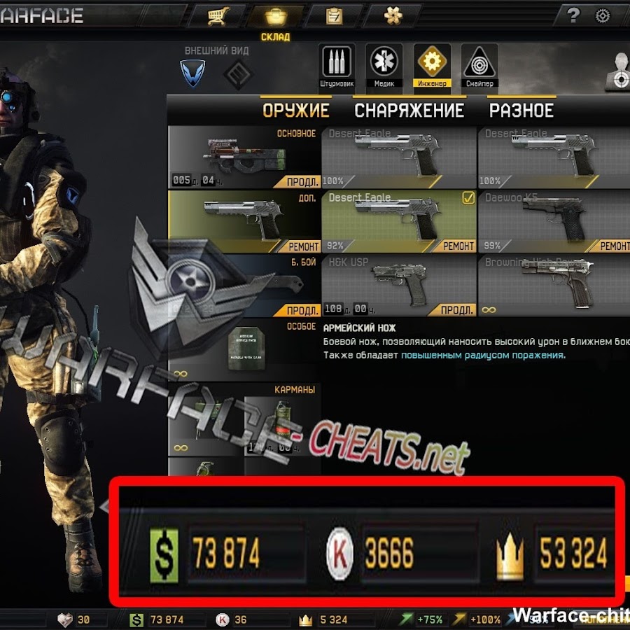 Эти инструменты позволят вам быстро развить персонажа и обзавестись мощным оружием.Если вы хотите использовать читы Warface, которые позволяют вам стрелять сквозь стены, выделять врага, быстро двигаться или стать бессмертным.