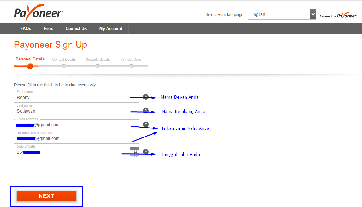 - Далее вы пройдете через процесс регистрации в Payoneer