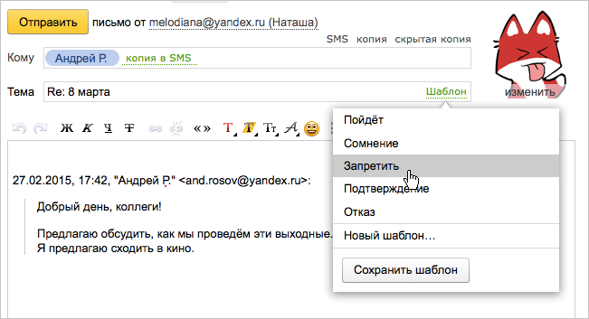Этот адрес будет использоваться по умолчанию для всех писем. Также он будет отображаться в правом верхнем углу страниц Яндекс.Почты при нажатии на имя и портрет пользователя.