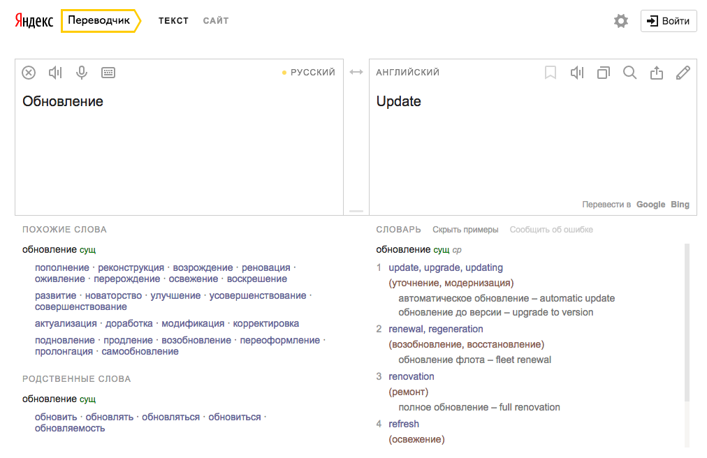 Для удобства можно переводить не весь текст, а отдельные слова или фразы. К тому же перевод по одному слову можно использовать для поиска словарных единиц с дополнительной информацией.
