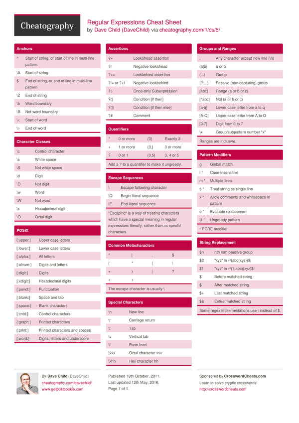 В этом синтаксисе большинство символов соответствуют сами себе («a» соответствует «a» и т.