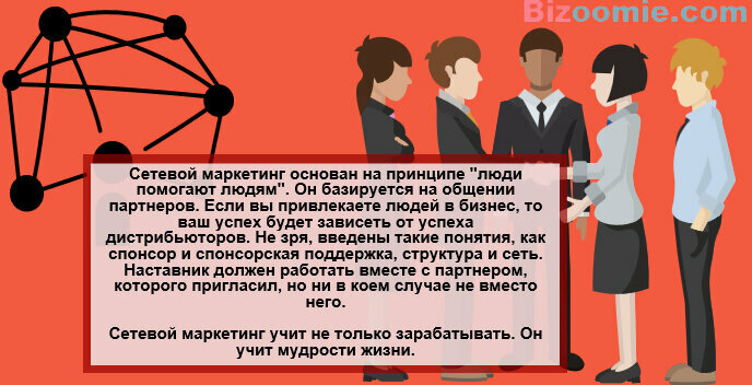 - Взаимопомощь. В МЛМ, в развитии лично приглашенных людей заинтересован спонсор. Он берет на себя ответственность за первичное обучение и поддержку новичков.