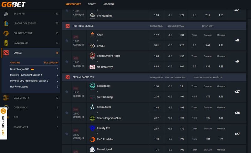 Основными ставками на киберспорт являются простые исходы на победу одной из команд.
