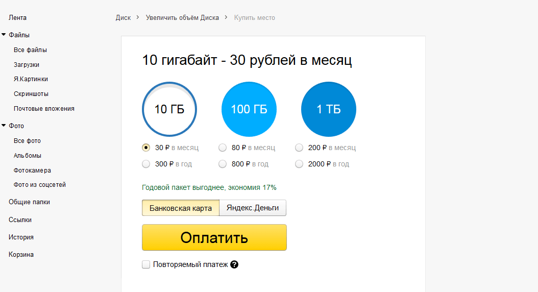 Все сервисы, кроме Облака Mail.Ru, имеют возможность расширения объема посредством покупки тарифных планов.