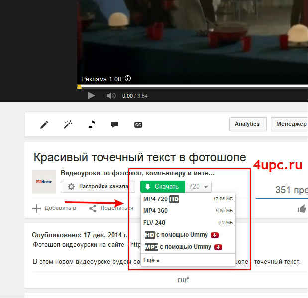 - откройте ролик, который хотите поместить на своем ресурсе;