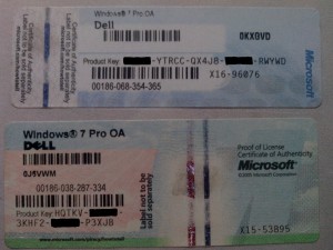 Windows 7 Professional, Dell, 32KD2-K9CTF-M3DJT-4J3WC-733WD