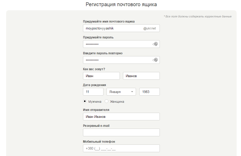 Регистрация электронного ящика другого сервиса, происходит по аналогичному принципу, что и в случае с Gmail.